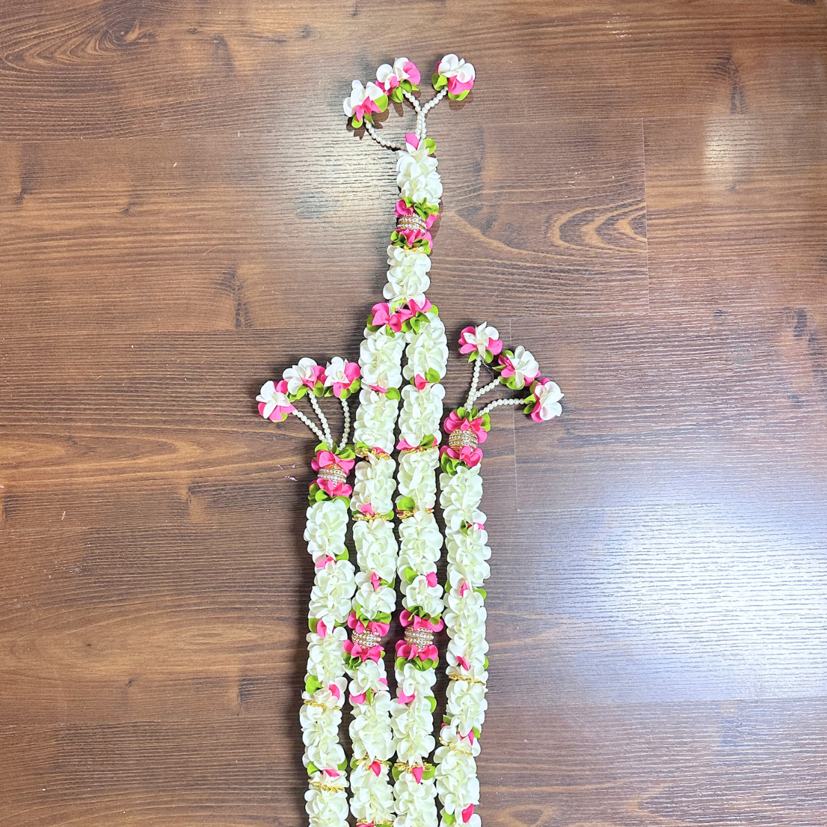 • Beautiful Handmade Design: Crafted with high-quality artificial flowers, golden beads, and decorative elements for a stunning traditional look.